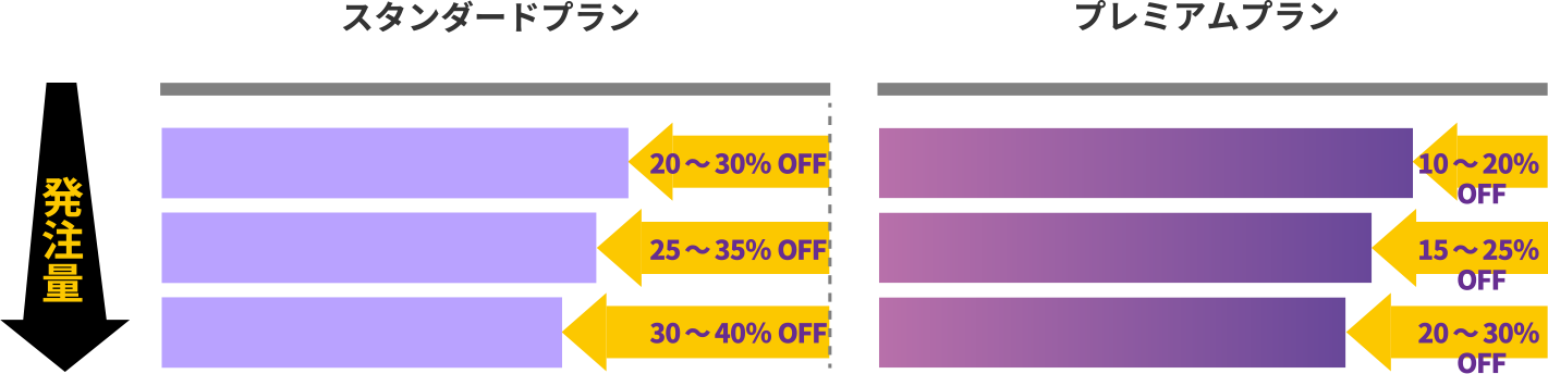 その後、発注量が増えるほど割引率が高まります。
